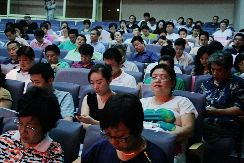 代表聚精会神地聆听《上海戏剧学院行政工作报告》