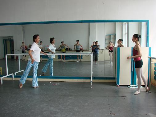 在辽宁芭蕾舞团的排练教室内,前天晚上刚刚结束半决赛冲入决赛的我校芭蕾舞青年组选手们,又在全身心投入到决赛的准备中,陈家年院长、朱美丽老师、凌桂明老师泡在炎热的练功房内,一丝不苟的给选手进行指导。