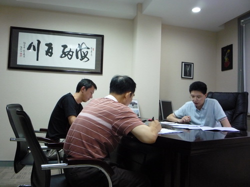 图为陈家年院长正在与其他老师一起研究训练和比赛计划
