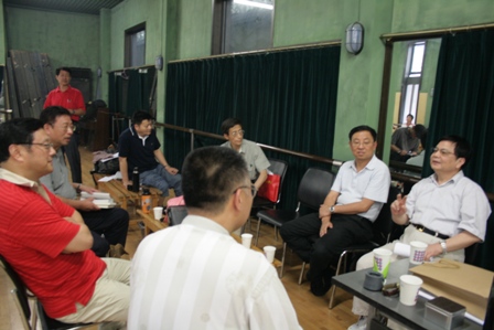 近日,我校制作的大型话剧《战神1948》正在紧锣密鼓地排练,迎接共和国建国60周年。今天下午4点,粟裕将军的侄子粟刚兵先生亲赴我校观看《战神1948》排练,我校党委书记楼巍陪同观看。