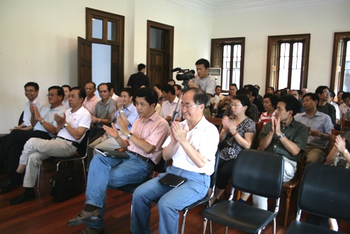 楼巍同志在讲话中一是感谢上级组织对我校工作的关心,祝贺韩生同志担任院长;二是学校新党委在一年中做了三件事:“保稳定、迎挑战、促发展”,工作和学习的生态好了;三是未来还有挑战和困难,我们要团结团结再团结、落实落实再落实,坚持科学发展出成果。