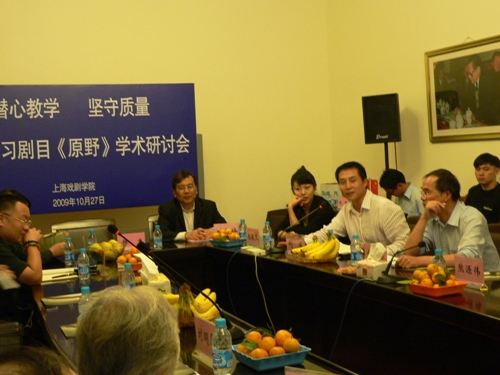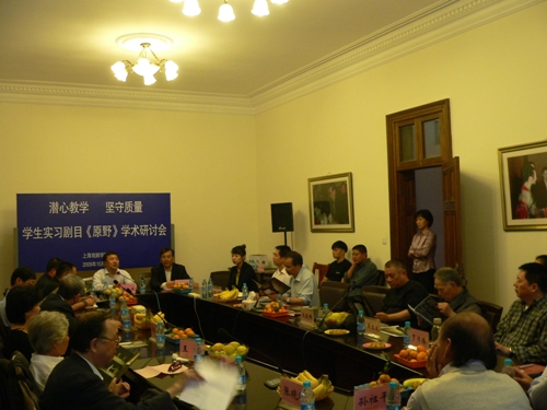 2009年10月27日下午,上海戏剧学院学生实习剧目《原野》学术研讨会在佛西楼召开。韩生院长出席会议并发表讲话。本次研讨会由学校学术委员会主任叶长海教授主持,教务处、演艺中心和表演系三部门联合举行。王履玮、龙俊杰、张生泉、厉震林、何雁、张军出席。
