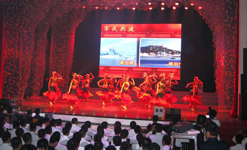 11月7日,我校文化志愿者服务队赴舟山参加海军某部队成立六十周年文艺汇演。该部队有着七战七捷的辉煌战绩,是海军的种子部队,先后培养了百余位将军。志愿者服务队由我校副院长葛朗带队,党办、院办主任金永林,舞蹈学院支部书记顾成明,团委书记陈云以及舞蹈学院、戏曲学校的指导老师一同前往。8日在文艺汇演的舞台上,舞蹈学院学生演出了群舞《花儿》,柔美的身姿、热情的态度感染了在座的所有战士;戏曲学校的小演员表演了《智取威虎山》选段,一板一眼、抑扬顿挫更是赢得了阵阵掌声。这两个节目不仅代表了我校与部队的军民鱼水深情,也抒发了青年学子对于守卫海疆的战士们的无限敬意。