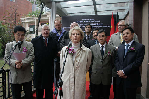 在此,也非常感谢法兰克福信贷银行组织的克劳斯・埃尔斯纳总经理,是他建议,在上海戏剧学院设立这座西方世界同时也是德国的骄傲――文学巨匠歌德的雕像,在此对他个人表示感谢。