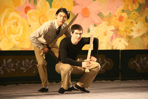12月3日,2009秋季美国纽约大学中国项目五位同学在莲花路校区剧场举行了题为“莎士比亚之夜”的汇报演出。此次演出以独创的形式呈现,以京剧配乐和程式化动作,英语的念白,演绎了西方经典剧目。整个演出涵盖了莎士比亚剧作《仲夏夜之梦》、《罗密欧与朱丽叶》、《第十二夜》、《奥赛罗》中的数个片段,特别是两位同学扮为武生,以京剧片段《三岔口》来呈现《奥赛罗》中黑夜决斗一场戏,引来台下观众的阵阵喝彩。此种形式的汇报演出在美国纽约大学中国授课项目中尚属首次,孙惠柱副院长出席表演会,对美国同学们的表演给予了肯定。