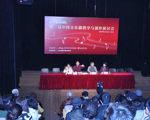 第三届中国音乐剧教学与创作研讨会今天上午在我校新空间剧场举行。中国音乐剧研究会会长王祖皆主持开幕式。上海戏剧学院院长韩生代表学校致辞。本次会议的主题为:“音乐剧基础课程的综合教学”。旨在通过总结全国范围内从事音乐剧教学与创作工作的院校多年来的教学与创作经验,进一步推进各地音乐剧教学与创作工作的发展。