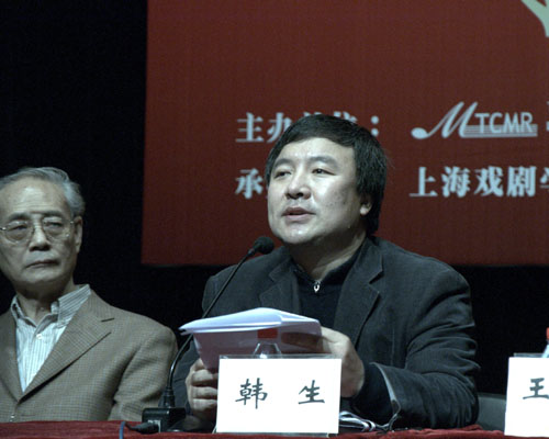 韩生强调:“2003年以来,我校新建的音乐剧专业以市场需求为导向,依托上戏演艺类综合艺术学科专业群优势,尊重人才培养规律,利用本校在话剧影视表演、戏曲和舞蹈表演等方面的专业基础,不断推进了音乐剧专业的教学与研究。经过这几年的探索和实践,该专业为社会培养了一批优秀的音乐剧专业演员。仅以目前临近毕业的06级音乐剧专业的学生为例,该班学生在校学习期间,已经陆续参演了音乐剧《长河》、 《台湾华文戏剧节》参演音乐剧《歌星与猩猩》以及 《国际创意周》 上海站开幕剧目――音乐话剧《瞬间不是永远》和近期正在公演的青春版音乐剧《弘一法师》的演出,获得了观众及业内人士的一致好评。此外,该班学生在参与音乐剧《长河》演出之后,又参与了导演关锦鹏为他们量身打造的电影《用心跳》的演出,在前不久上海国际艺术节《天天演》舞台上,该班学生的表演也给市民们带去赏心悦目的中国音乐剧艺术,受到了广大市民的热烈欢迎,也让群众更多的了解了音乐剧。当然,我们的工作只是开始,在面临巨大的潜在需求、巨大的历史文化资源面前,我们更加感到人才培养任务的紧迫,更加感到充满创作的冲动,更加感到对理论支撑渴望。我们知道其他兄弟院校在这方面的工作比我们更富有经验和成果,希望通过这次会议能够向全国各专业院校的同仁们学习更多的宝贵经验,以进一步加强全国各专业院校之间的经验交流和互动,进一步提高我校在音乐剧创作、教学、研究以及人才培养方面的实践水平,为促进音乐剧艺术在我国的发展以及创立民族的音乐剧艺术作出更大的贡献。”