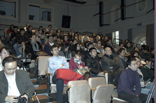 本次会议由我校表演系承办。为了开好会议,在学校领导指导和关心下,表演系上下团结,齐心协力,为会议的顺利举行作出了努力。今天与会人员有:中国音乐剧研究会副会长沈振翮,顾问沈承宙,音乐剧研究会教学委员会主任廖向红等有关专家以及来自全国各地的艺术院校老师。正式代表35人,与会者有100人。 (图:伟伟;文、编辑:白水)