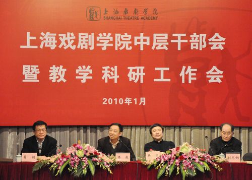 1月20日 、21日,我校2009年度第二次中层干部会暨教学科研工作会在新空间剧场举行。党委书记楼巍,院长韩生,副院长葛朗、刘志钢,院长助理王宏舟、徐幸捷及全体中层干部出席会议。
