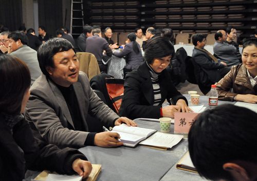 本次会议形式的一大特色,是为了让与会者对会议内容有更多的参与机会,由院长助理王宏舟主持,分别就“我校干部考核制度进一步完善”、“工作室制度进一步建立”、“如何构建面向未来的艺术教育模式”等问题进行了“世界咖啡屋”式的讨论。讨论时间有限,但是每一个干部都有好几次发表意见和建议的机会。大家一致反映,这样的讨论,形式新颖、内容更扎实,符合现代信息社会的流程,是一次发扬民主、提高会议效率的有益尝试。