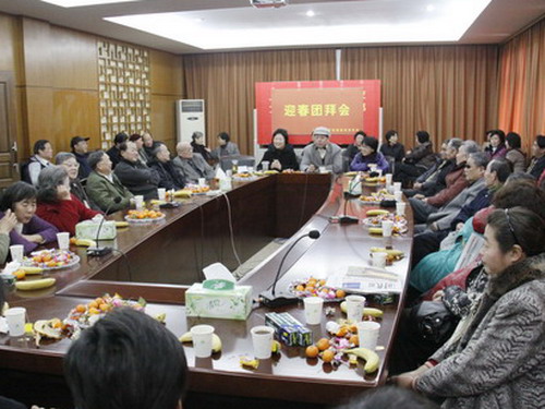 团拜会开始后先由孙秋红副书记代表学校党政领导向在座的各位老领导、老职工致以亲切的问候和良好的祝愿,并向与会人员通报了一年以来戏校方方面面所取得的可喜成绩,学生和教职工获得的各项大奖;贡献国副校长也做了热情洋溢的讲话,介绍了退管会一年来的各项工作,例如已被戏校退管会列为常规工作的针对离、退休教职工的家访工作。在讲话中贡校长充分肯定了离、退休教职工为戏校发展所作出的贡献和打下的坚实基础,感谢他们长期以来对学校的关心和支持;校办主任孙蕾老师也做了补充发言,并向与会的离退休教职工发放了一月二十四日在逸夫舞台由戏校07京演班学生公演的折子戏票,老师们反应很热烈,纷纷索票,虽然大部分人已退离工作岗位,但是大家对学校的教学、学生的发展的关注依旧没有改变。