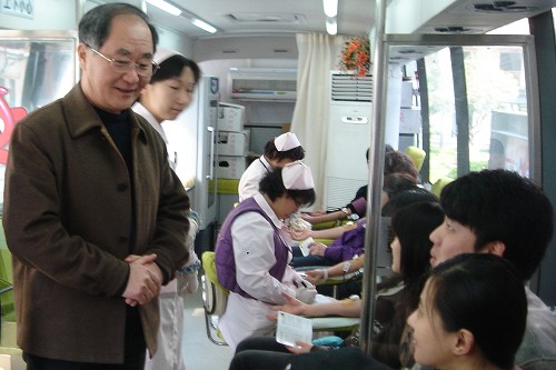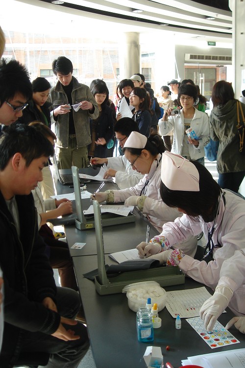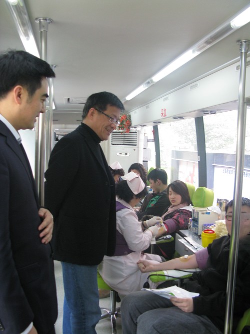 本次献血活动是择型献血,是世博会整体筹备、保障工作之一。同学们满面自信的笑容、勇敢的走上献血车,希望为社会奉献爱心,为世博尽自己一份绵薄之力。不少同学献血完交流了自己的感受。“报名的时候觉得献血是一项神圣又光荣的事情,踏上采血车,看着粗粗的针管时真的很紧张。但采血时反而平静下来。不论如何,在我大学生涯中做了一件好事,一件有意义的事。”