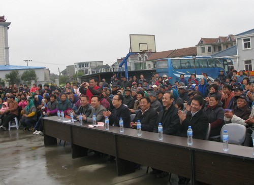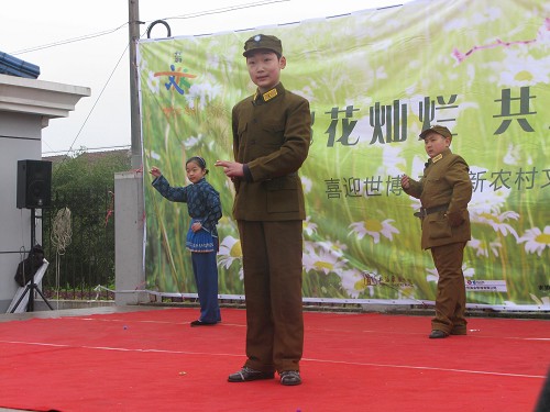 同学们冒着细雨表演了舞蹈、戏曲、歌曲、魔术等节目,博得了在场观众的阵阵掌声。我校与老港镇成日村党支部结对共建三年时间中,多次送戏下乡、送书下乡,今年双方再次达成下一个三年的共建计划。本次演出不但为了活跃和丰富农村文化生活,也为了传播世博知识,让更多人参与世博、共享世博,演出其中穿插了世博知识问答等环节。