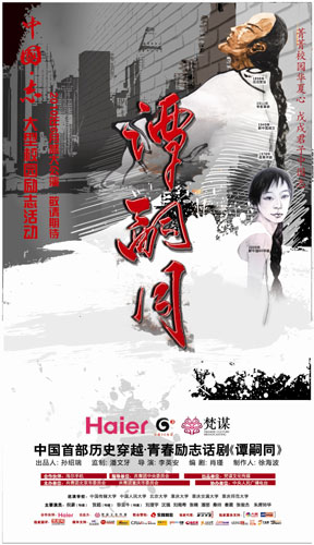 2010年6月,由“梵谋文化传媒联手海尔手机”出品、东阿阿胶联合赞助的大型历史穿越青春励志话剧《谭嗣同》将在中国传媒大学、北京大学等三所北京高校公益演出,此次演出得到了共青团中央委员会、文化部、教育部及共青团北京市委员会的大力支持。