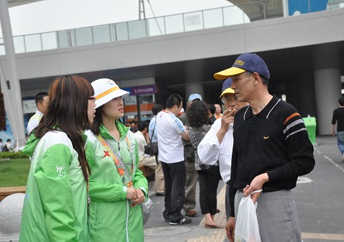 今天是我们上戏世博园区志愿者正式上岗的第十三天,应到62人,实到60人。还有一天,我们的世博园区服务就要结束了,所以这几天来,同学们都非常珍惜。大家努力把世博大道公交站的秩序维持好,努力把演出的引导工作做好。每当有世博中心的相关领导巡视岗位时,都会对上戏的这几个服务站点表示满意。标准的普通话,标准的站姿,标准的手势,孝敬老人、关爱儿童,许多游客都说,我们是世博大道上服务态度最好、指引方向最明确的志愿者。每当听到这样赞美,志愿者们都由衷的骄傲,也更加意识到我们的引导对游客是多么的重要,一种要做得更好的责任感便油然而生。