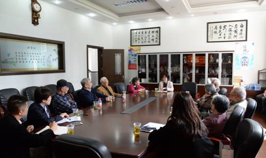 参观后,老同志们来到会议室与实验中学的党支部书记兼校长全迅,党支部副书记兼副校长王德明进行座谈。全校长代表实验中学对上戏老领导、老专家们的到来表示热烈欢迎并介绍了学校办学规模及教学管理情况。全校长说实验中学坐落在当年中国第一所现代戏剧高等学校——上海市立实验戏剧学校旧址上,多年来一直致力于传承优良的艺术文化传统,1992年起开展京剧艺术教育,成为上海最早将京剧艺术教育引入课堂的学校之一,至今取得了丰硕的成果。近年来通过“联合专业艺术院校”、“建设校园戏剧艺术环境”、“架构戏剧艺术特色课程体系”、“提高戏剧艺术特色课程执行力”等措施,打造学校的“戏剧艺术特色发展项目”,为繁荣和传承民族文化,培育有艺术素养的现代公民。学校在艺术教育中让学生感悟做人的道理,培养他们的责任与担当,力求通过教学中“有戏”实现学生未来人生“有戏”的育人目标。全校长表示希望能够得到艺术顶级院校的上海戏剧学院在艺术教育上的帮助以进一步提升学校艺术教育工作水平。