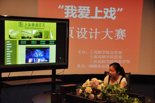 6月27日下午一点半,上海戏剧学院首届“我爱上戏”网页设计大赛评选颁奖大会在上海戏剧学院虚拟实验室举行。宣传部部长张生泉老师、团委书记陈云老师、创意学院党支部副书记刘志新老师、创意学院盛思梅老师、信息中心主任助理陈永东老师、创意学院陈晔老师组成的专家评委组进行了认真严格的评审,来自各院系的同学观摩了比赛。经过了两个半小时的激烈角逐,终于在十九份高质量的作品中选出最终获奖作品。