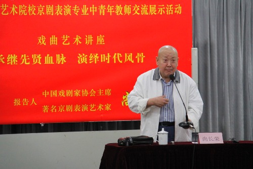 活动期间还举办了艺术讲座,中国戏剧家协会主席、著名京剧表演艺术家尚长荣做了名为《承续先贤血脉,演绎时代风骨》的专题报告。报告内容贴近实际,深入浅出,深深吸引了台下观众,激发起师生们继承优秀文化,献身戏曲事业的热情。