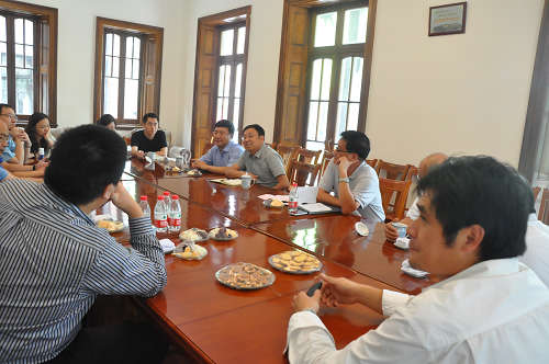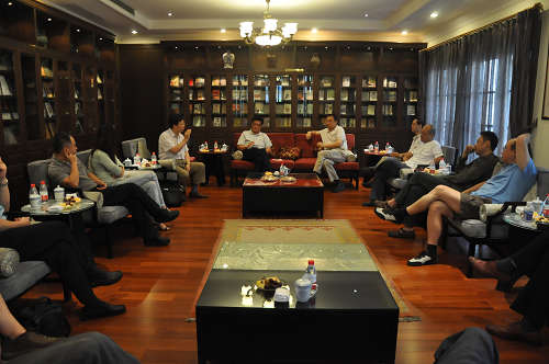 图为楼巍、韩生两位领导与校友座谈