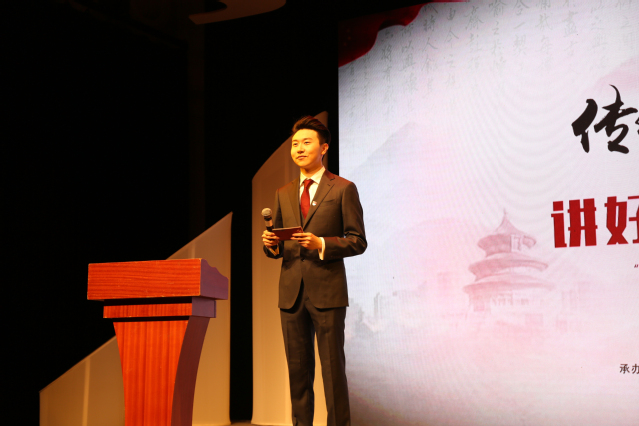第四篇章“不忘本来、吸收外来、面向未来”,由16级导表演艺术博士研究生滕晓鹏引领同学们从“熊佛西到外百老汇”。通过排演校庆话剧《熊佛西》,滕晓鹏感到老校长熊佛西先生便是不忘本来、吸收外来、面向未来的典范。熊佛西院长的孙子、音乐剧中心教师熊梦楚老师作为嘉宾,上台分享了熊佛西院长的事迹;18级音乐剧班的本科生也深情朗诵了校友写给熊院长的信,带给观众无穷感动。滕晓鹏以熊佛西院长为榜样,将自己的英文版话剧《枫梓乡》搬上了外百老汇Theatre Row剧院,让中国故事唱响纽约主流剧场,也让观众深感振奋。结尾处,18级音乐剧本科生以阿卡贝拉形式演唱了校歌,现场气氛热烈,活动到达高潮。在校歌声中,同学们不仅点燃了爱党爱国爱校热情,更思考着如何让艺术作品进入主流市场、影响主流人群,让中国声音在世界舞台上越来越洪亮。