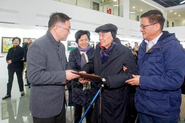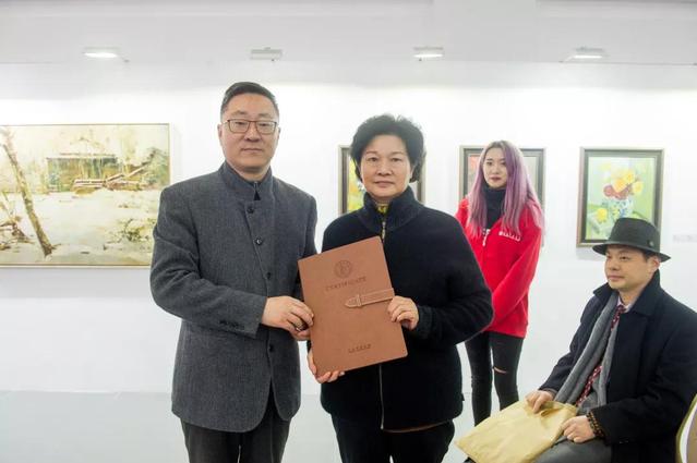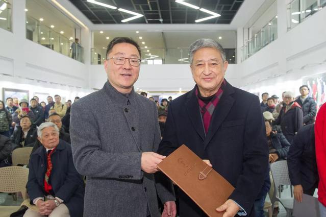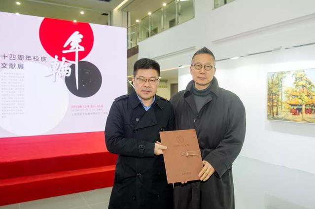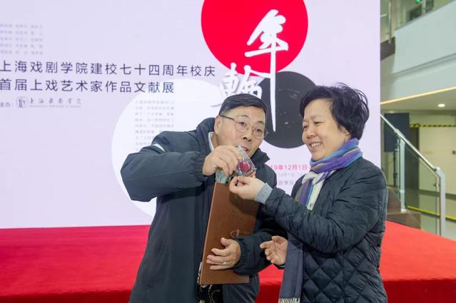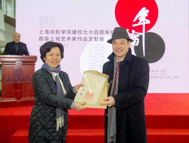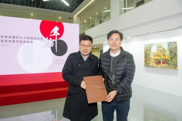 党委副书记胡敏接受杨启恒先生代杨祖述先生赠予上戏的电子画册