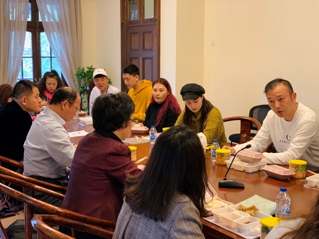 午餐会(沙龙)在继续教育学院最新拍摄的宣传片与表演专业(现代音乐)师生携手摄制为庆祝新中国七十周年献礼的音乐短片《红旗飘飘》的悠扬歌声中展开。本期“大家长”、校党委常委、总会计张佳春与师生代表一遍享用学校准备的午餐一边聊着“家常”,气氛温馨而热烈。张佳春老师一开始就和大家亲切问好并首先分享了自己前来上戏分管联系继续教育学院的感受与期盼,更是细致而战略性地向在做的师生代表介绍了上海戏剧学院七十余年办学以来的辉煌成就与未来发展。她谈到习近平总书记对于新时代文艺工作者的要求,殷切希望我们继续教育学院能够在学校党委的领导下,放眼世界,着眼未来,在新时代能够凝心聚力、创新开拓,将学院努力办成世界知名、国内一流的艺术高等继续教育学院,真正做到为党育人、为国育才,培养社会主义文艺事业的建设者和接班人。接着,她热切关注在座师生代表对于在上海戏剧学院、继续教育学院的学习、生活、工作情况以及思想困惑,积极征求同学们对学校和学院进一步发展的意见和建议,迅速拉近了与在场师生们的距离,一下子打开了“家庭成员”们的话匣子。师生代表踊跃交流,往往有的还没把话说完就已经有人欲将话筒拿走,甚至直接举着手就把疑惑和感受脱口而出,惹得大家不禁笑了起来。在座的领导、老师与同学好像在这一时刻忘记了彼此的身份,充分融入到了“大家庭”中。大家围绕着学校浦江新校区的未来规划和发展,畅谈自己的设想与建议,展望继续教育学院能够在新校区有更多的参与与学习工作的机会;同学们根据自身在不同教学点求学的经历提出了诸多的困惑与感受,围绕着学院在教育教学的设置与创新、基础设施建设、教学点搬迁、住宿生活、社会实践、志愿服务、社团建设、职业生涯规划、与普高学生的交叉交融等一系列内容交流,为学校与学院的反战建言献策;教师代表则围绕着学校的整体规划,继续教育学院未来的发展与在座的校领导与学院领导负责人老师充分交流意见,不仅谈及了自身工作发展所遇到的思想困惑,更是提出了很多对学校学院发展富有建设性与针对性的意见,同时他们积极为学生们发声,为学生们争取更多的资源与关注,涉及到教学的空间与设备、教学内容的设置、校园的安全等。
