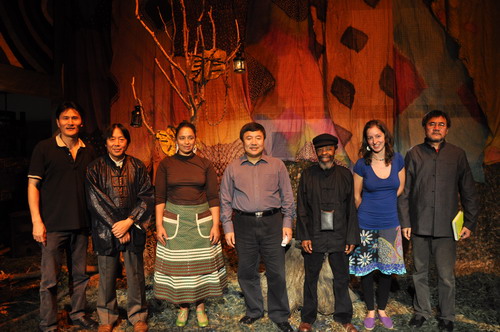 10月18日晚7:15分,一场热情的非洲鼓表演拉开了这次诗会的序幕。一群来自非洲的手鼓一边演奏独特的非洲木琴,一边敲击非洲鼓,以活力、生动和热情的表演赢得了广大师生的热烈掌声。韩生院长以热情洋溢的致辞欢迎远道而来的南非诗人,并阐明了艺术家和师生们关注南非文学和艺术的深远意义。