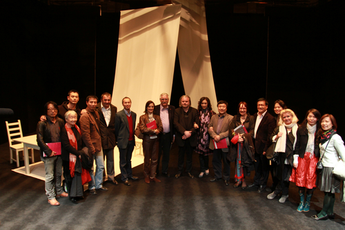 图为约恩•福瑟与我校领导和全体主创人员合影