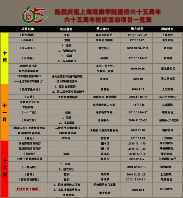 图为校庆活动项目一览表