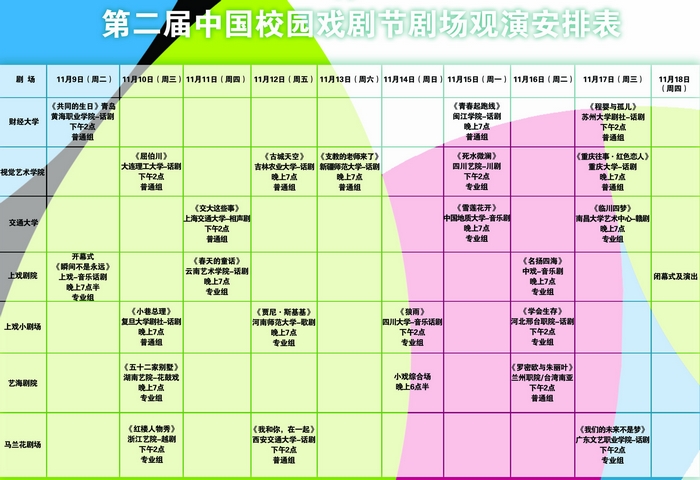图为第二届中国校园戏剧节演出安排表