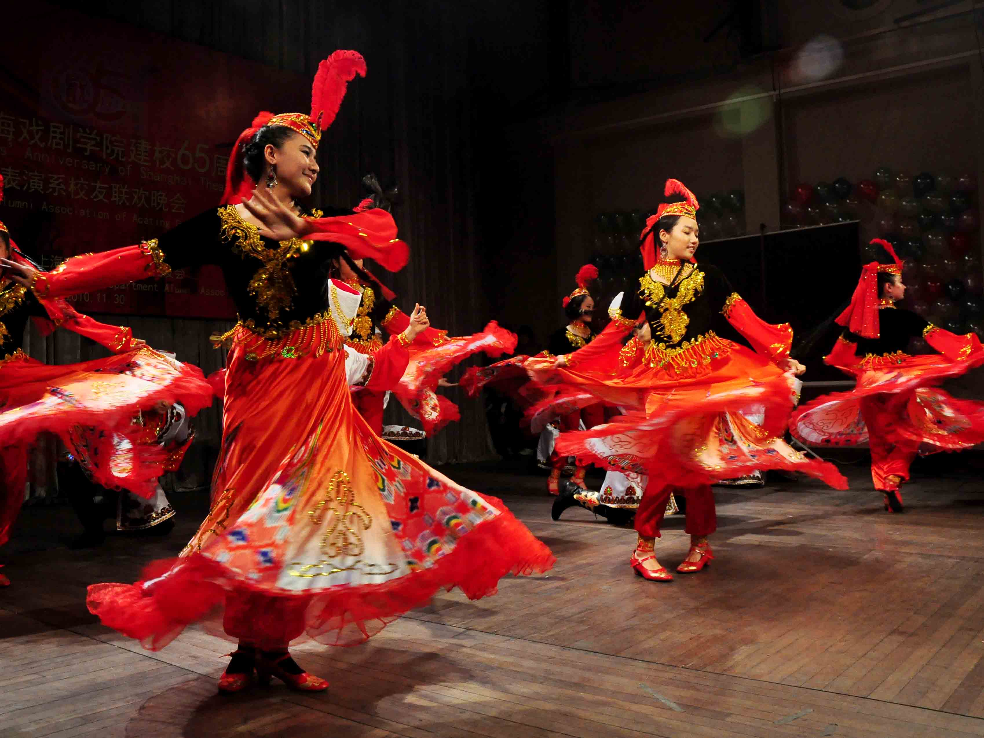 一段真挚动人的校友采访纪录片温暖了新空间的每一个观众,里面充满了校友们对大学时光的回忆、对母校的深情和祝福,以及对我们这些上戏新一代的希望和祝福。纪录片的制作人费咏老师谈及采访校友的感人制作过程不禁泪洒现场。晚会节目围绕着声、台、形、表做了不同的展示,且融入了丰富的少数民族元素:热情的新疆舞蹈、豪放的蒙古歌舞让我们耳目一新,马头琴独奏引领我们去到了一望无际的辽阔草原。此外,音乐剧片段、poping、爵士舞、台词展示也引来了阵阵雷鸣般的掌声与喝彩。值得一提的是,来自意大利的一位交换生即兴自弹自唱一曲《mad world》,将晚会气氛推向高潮。