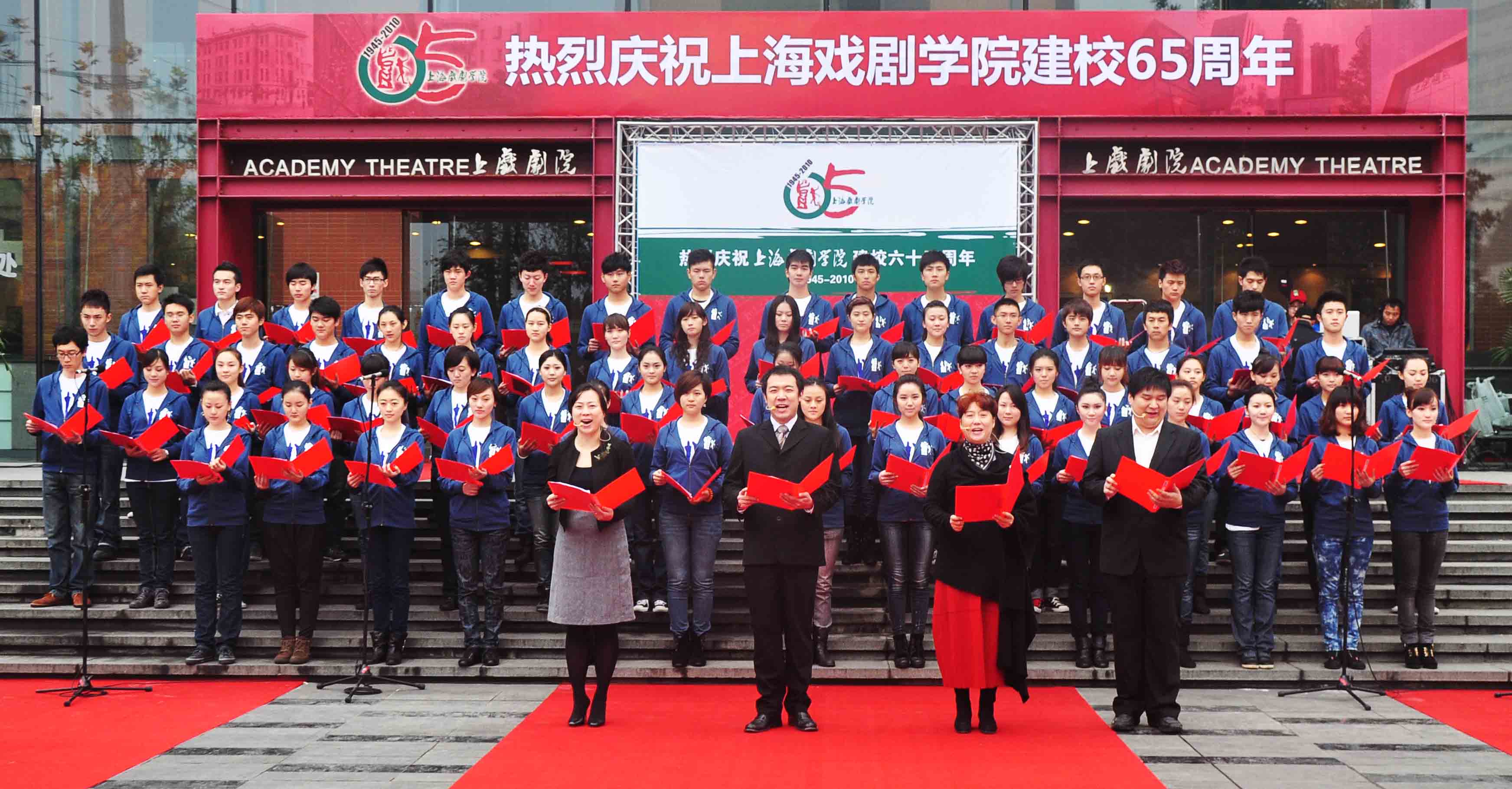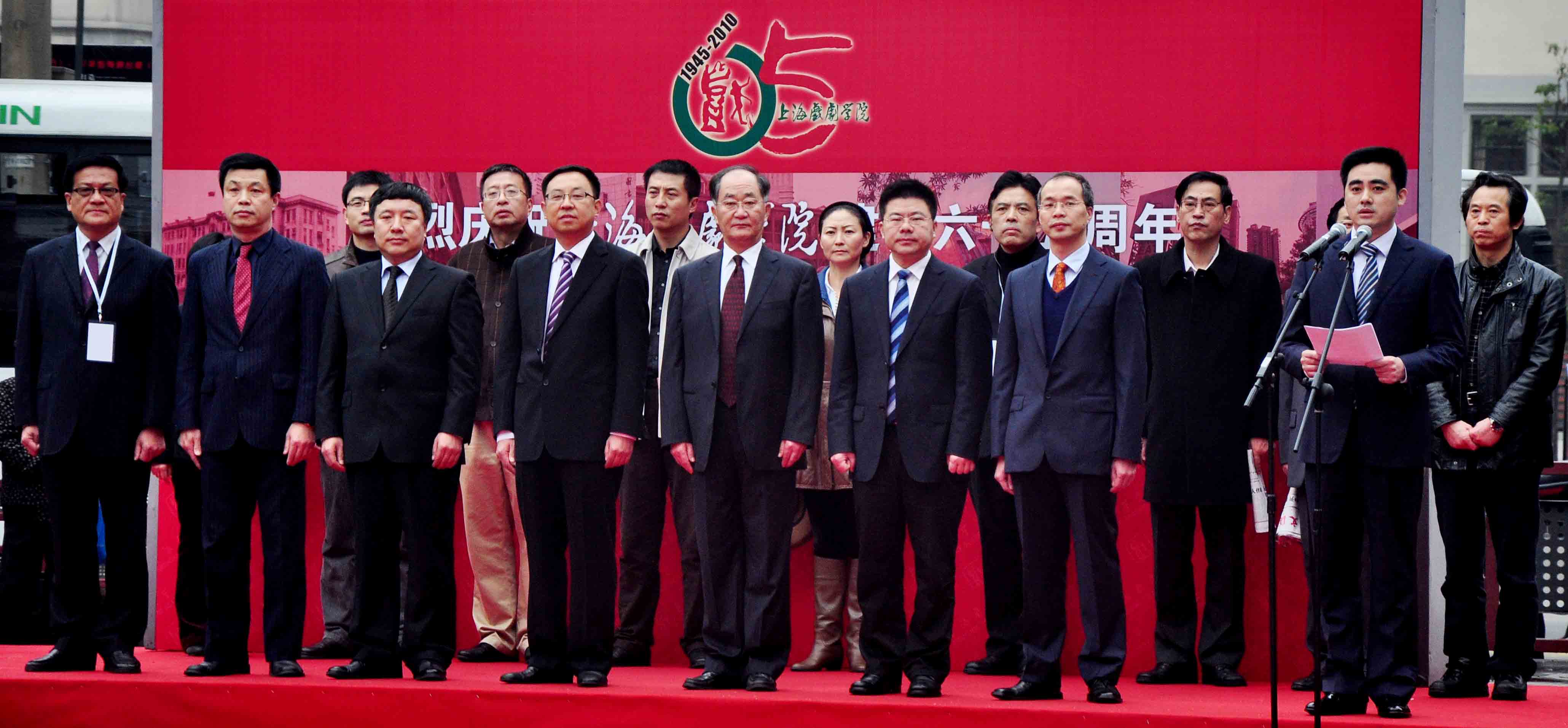 2010年12月1日是上海戏剧学院65周年华诞。上午8点整,校庆升旗仪式在上戏剧院广场前隆重举行。本次升旗仪式出席的领导有党委书记楼巍,院长韩生,副院长刘志钢、孙惠柱、黄昌勇、宫宝荣,校务委员会副主任葛朗,升旗仪式由院长助理王宏舟主持。全体上戏师生和校友都参加了庄严的升旗仪式。