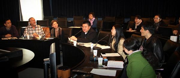 黄昌勇副院长向美方代表介绍了上海戏剧学院的学科构成、专业特点及学生培养状况,并邀请他们观看上海戏剧学院建校六十五周年:“红楼·梦”——大型多媒体主题秀的视频,引起美方代表的极大兴趣。