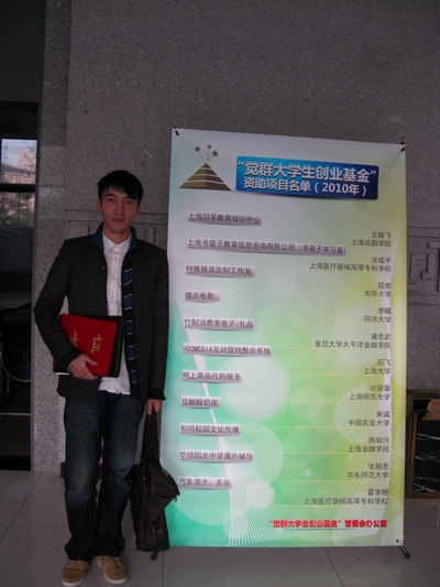 由上海玉佛禅寺出资1000万元创立的“觉群大学生创业基金”2010年资助项目签约仪式于2010年12月9日下午二时在上海师范大学举行,上海市慈善基金会副理事长夏秀荣出席仪式并讲话。我校2010届毕业生王振飞凭借“上海贝孚教育培训中心”创业项目从27名申请团队中脱颖而出,成功获得创业基金,这是继我校2005级导演系创业团队入选该基金项目之后的又一名创业学生。签约仪式上,王振飞与其他10个大学生创业项目的代表一同与夏秀荣副理事长签订了资助协议书。