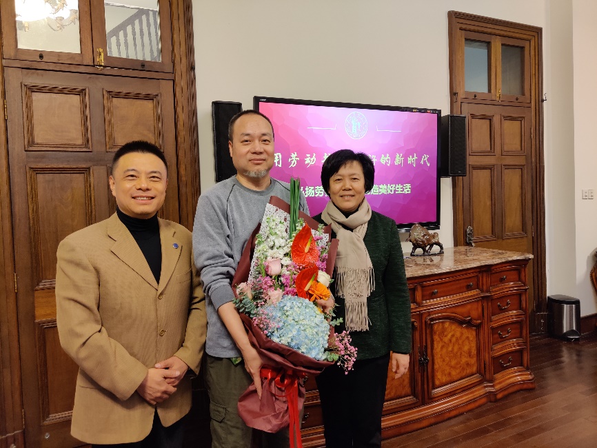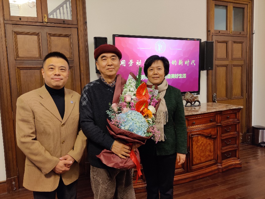 2019年12月20日下午,上海戏剧学院党委副书记胡敏,党委副书记、副院长、工会主席张伟令代表全校教职工慰问了我校全国及上海市的劳模(享受劳模待遇)和五一劳动奖章获得者,向他们献上鲜花。上海市劳模孙祖平老师、全国文化系统先进工作者范和生老师、全国五一劳动奖章获得者王立军老师、上海市劳模陆军老师、上海市劳模杨新华老师、上海市五一劳动奖章获得者裴晶老师等接受了慰问。张伟令院长本人也是全国五一劳动奖章获得者,使这次活动更有意义。