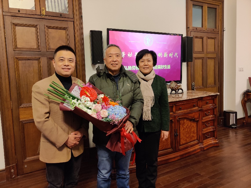 工会将每年的慰问劳模和五一劳动奖章获得者作为年终慰问的重点工作。第二天工会的同志去专程慰问了之前没能到场的戴平老师、朱美丽老师。