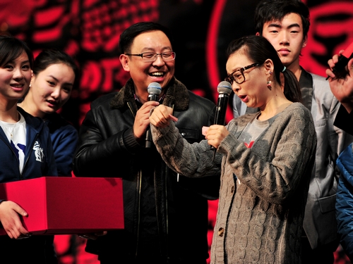 在激动人心的抽奖环节之后,全场观众在主持人的带领之下一齐倒数,共同迎接新年钟声的敲响,共同昂首阔步迈向2011年!伴着一曲美妙动人的《难忘今宵》,在耀眼的烟花和热烈的欢呼声中,庆祝上海戏剧学院建校65周年迎新晚会圆满结束。