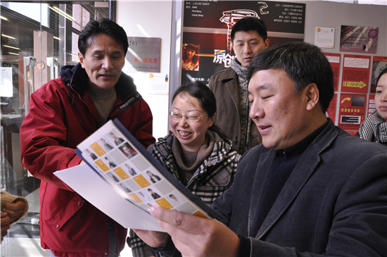 图为韩生院长饶有兴致地阅读作品介绍手册