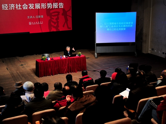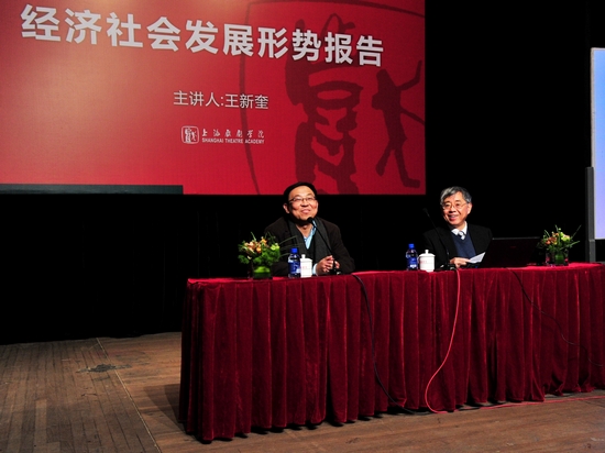 今天(12日)上午,我校在新空间举行经济形势报告会。著名经济学家、上海市工商联主席、原上海市政协副主席、原上海外贸学院院长王新奎教授担任主讲。党委书记楼巍主持会议,院长韩生,副院长刘志钢、孙惠柱、黄昌勇、宫宝荣,校务委员会副主任葛朗和全体中层干部、有关教师共计80余人出席会议。王新奎教授在两个多小时的报告中,结合当前国内外经济形势,特别是结合未来上海城市发展和功能定位以及服务业的发展等内容做了深入浅出的分析,受到与会者一致欢迎。(文:白水 图:佳奇 编辑:戎戎)