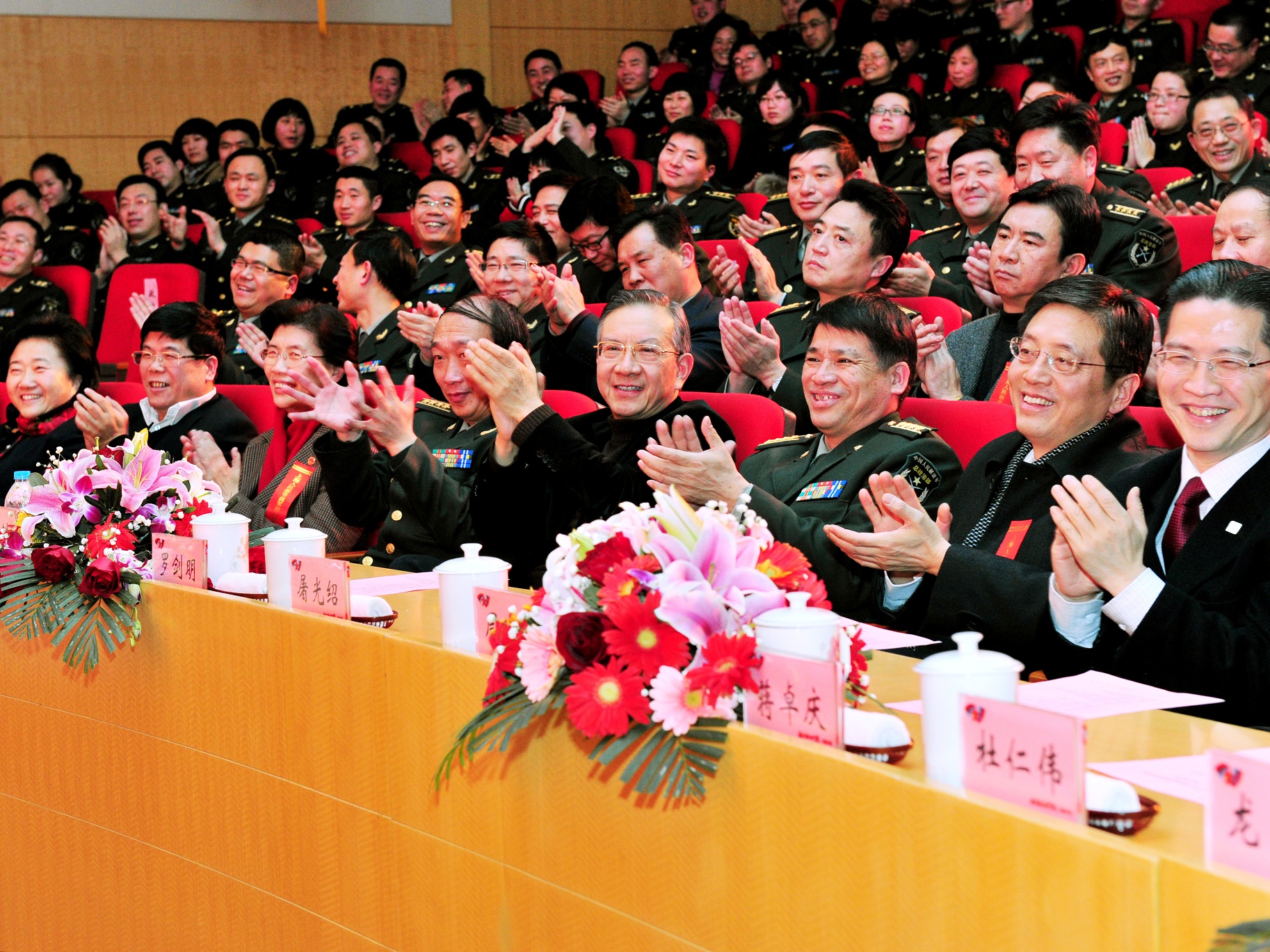 昨天(1月25日)下午,上海市人大常委会主任、党组书记刘云耕,市委常委、副市长、市政府党组副书记屠光绍,市人大常委会副主任杨定华,市政协副主席周汉民,市委副秘书长刘卫国等市领导在南京政治学院上海分院罗剑明院长及贡沈平政委等部队领导的陪同下来到该院慰问部队官兵,并一同观看了上海人民春节拥军慰问团慰问武警部队演出。