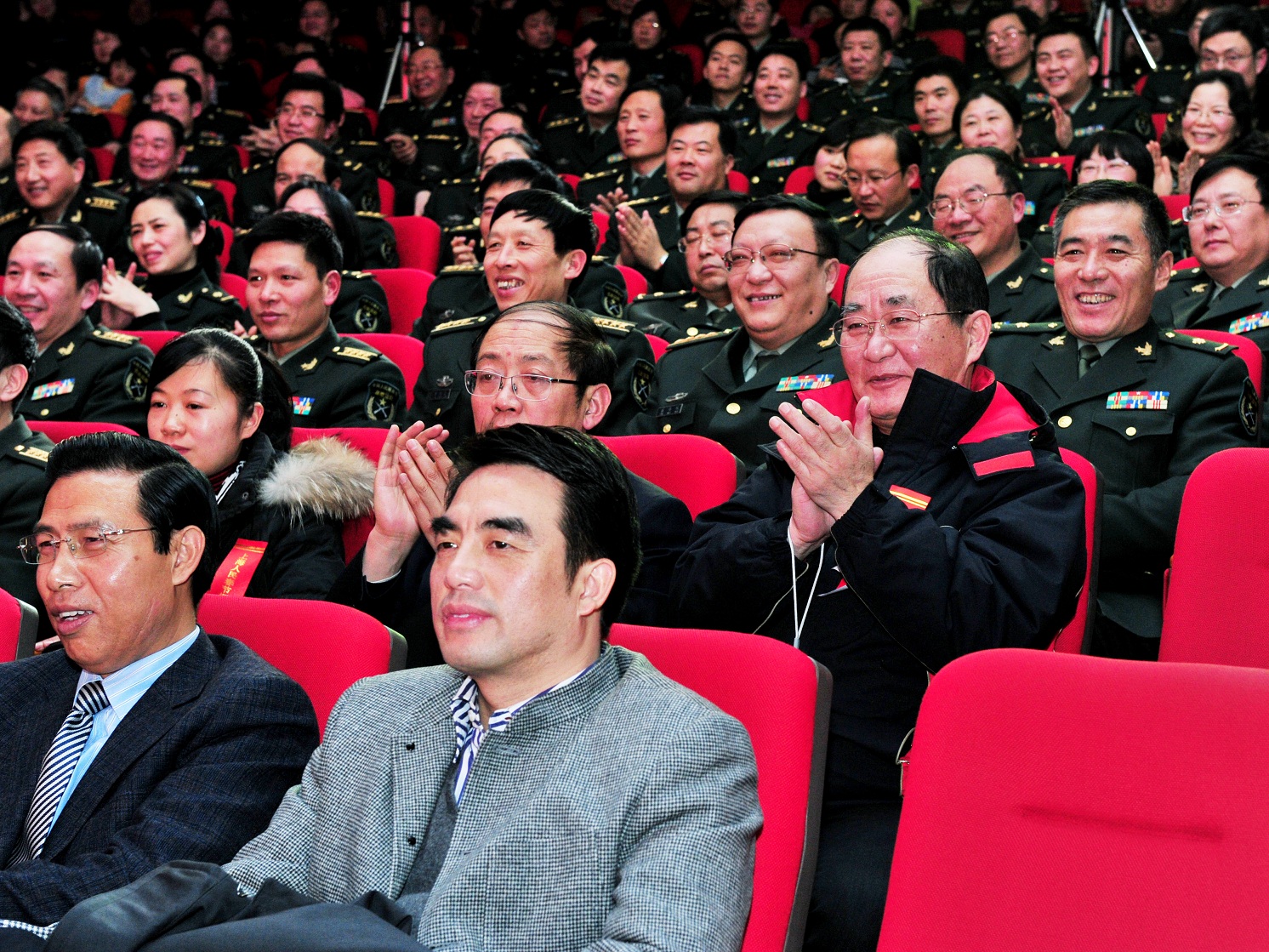 图为刘云耕等领导与部队官兵对节目报以热烈掌声