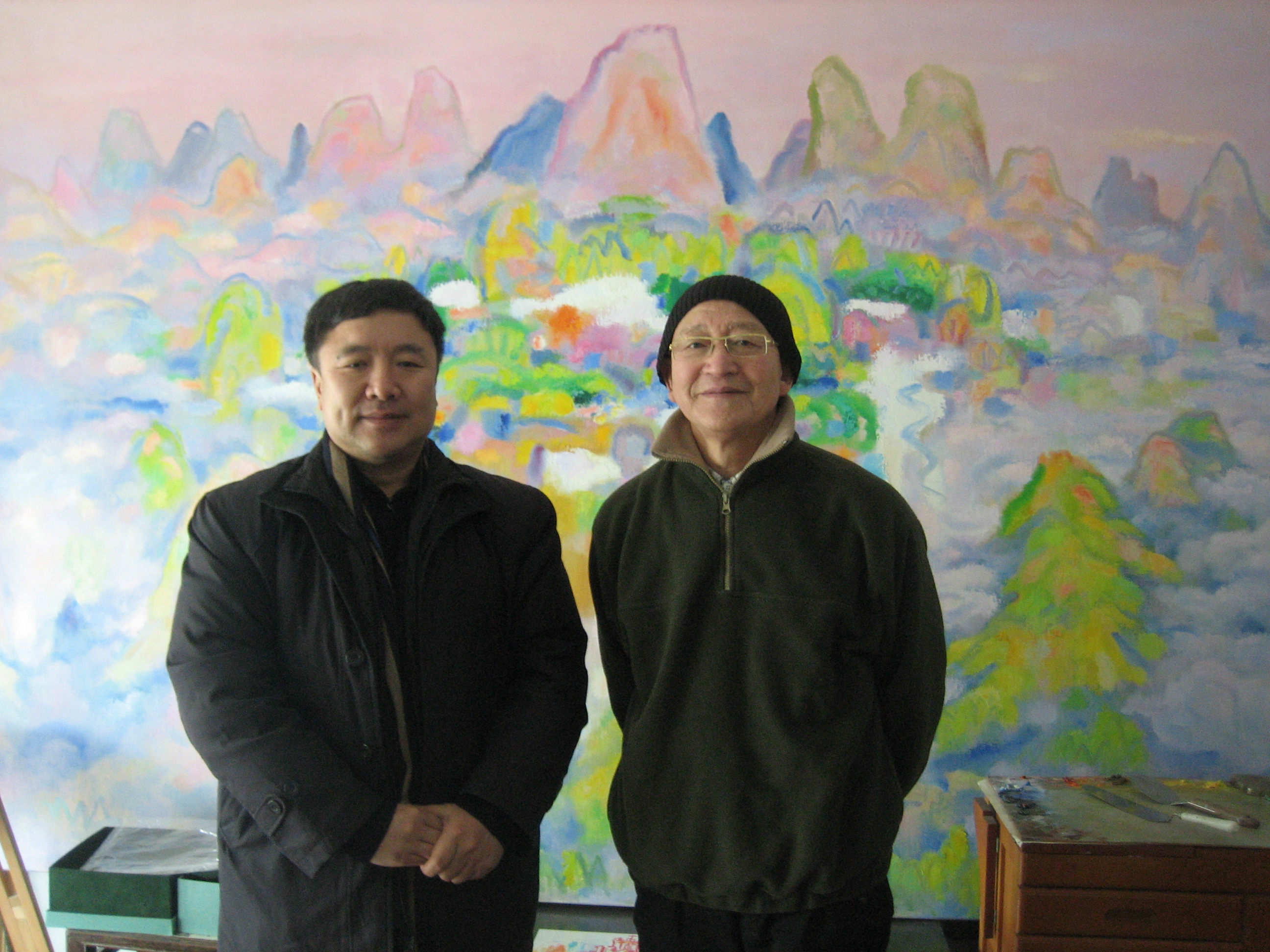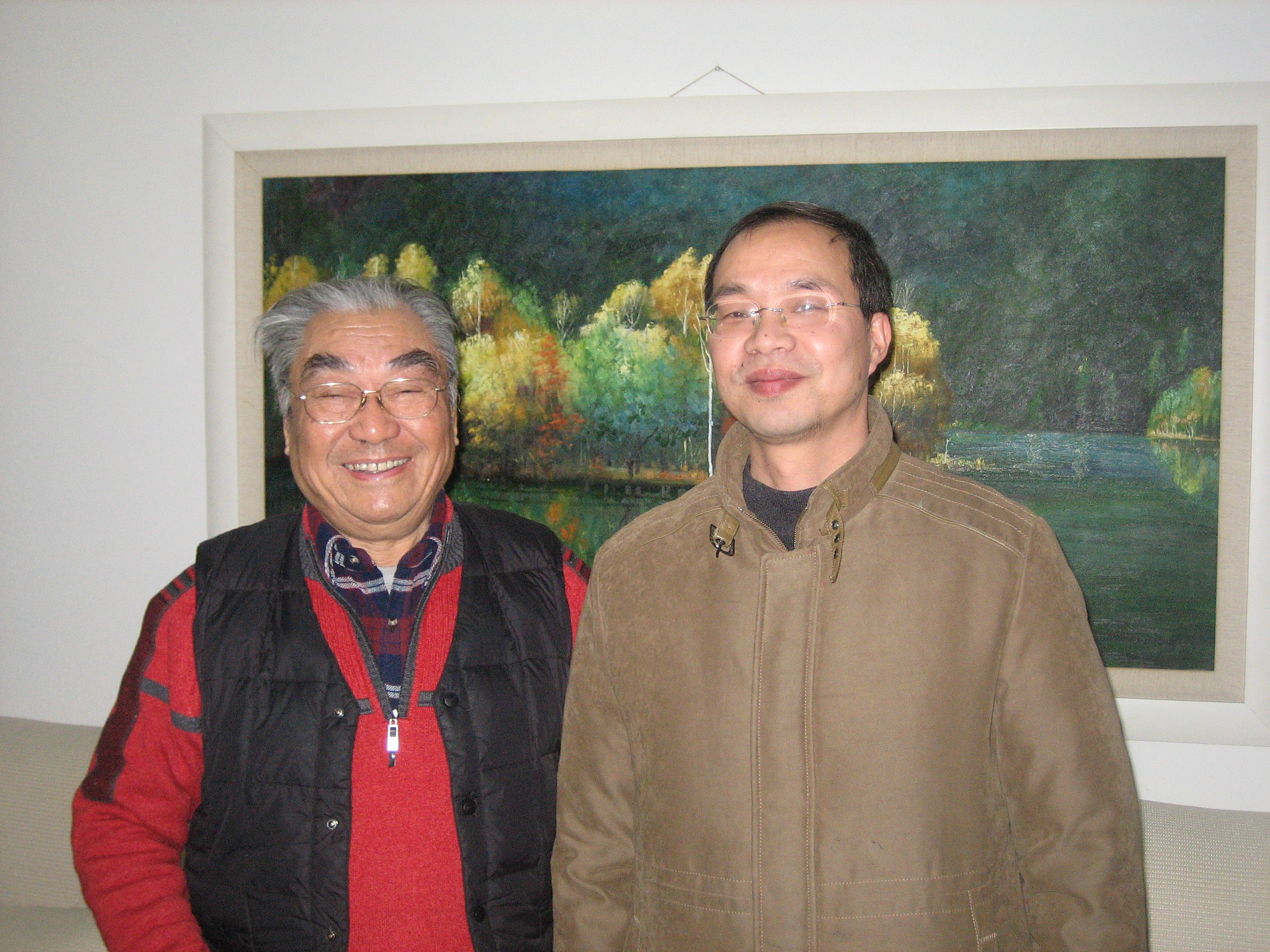 在上海市文史馆员陈钧德教授家中,韩生院长详细询问了陈老师的生活和健康情况,欣赏了陈老师的近作,由衷地赞扬陈老师在艺术事业上孜孜以求的精神和达观率真的性格,并祝陈老师健康长寿。