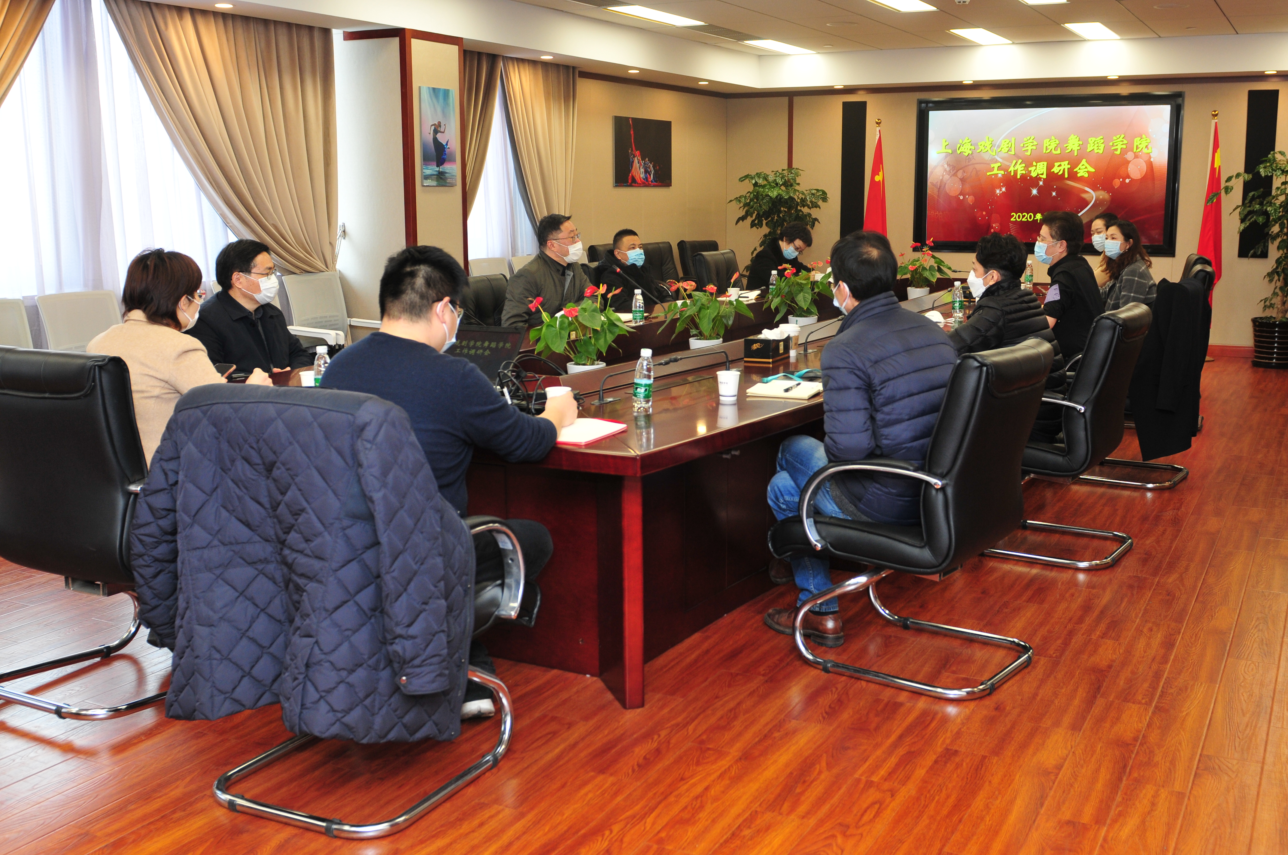 谢巍书记表示受疫情影响,虽然不是正式开学,但整体教学运作已进入状态。本次调研会主要是学校党委为了深入了解舞蹈学院的线上教学情况,同时也对虹桥路校区运营管理情况进行实地考察,并与舞蹈学院领导班子共同讨论实际工作中遇到问题及需要学校层面给予的帮助。