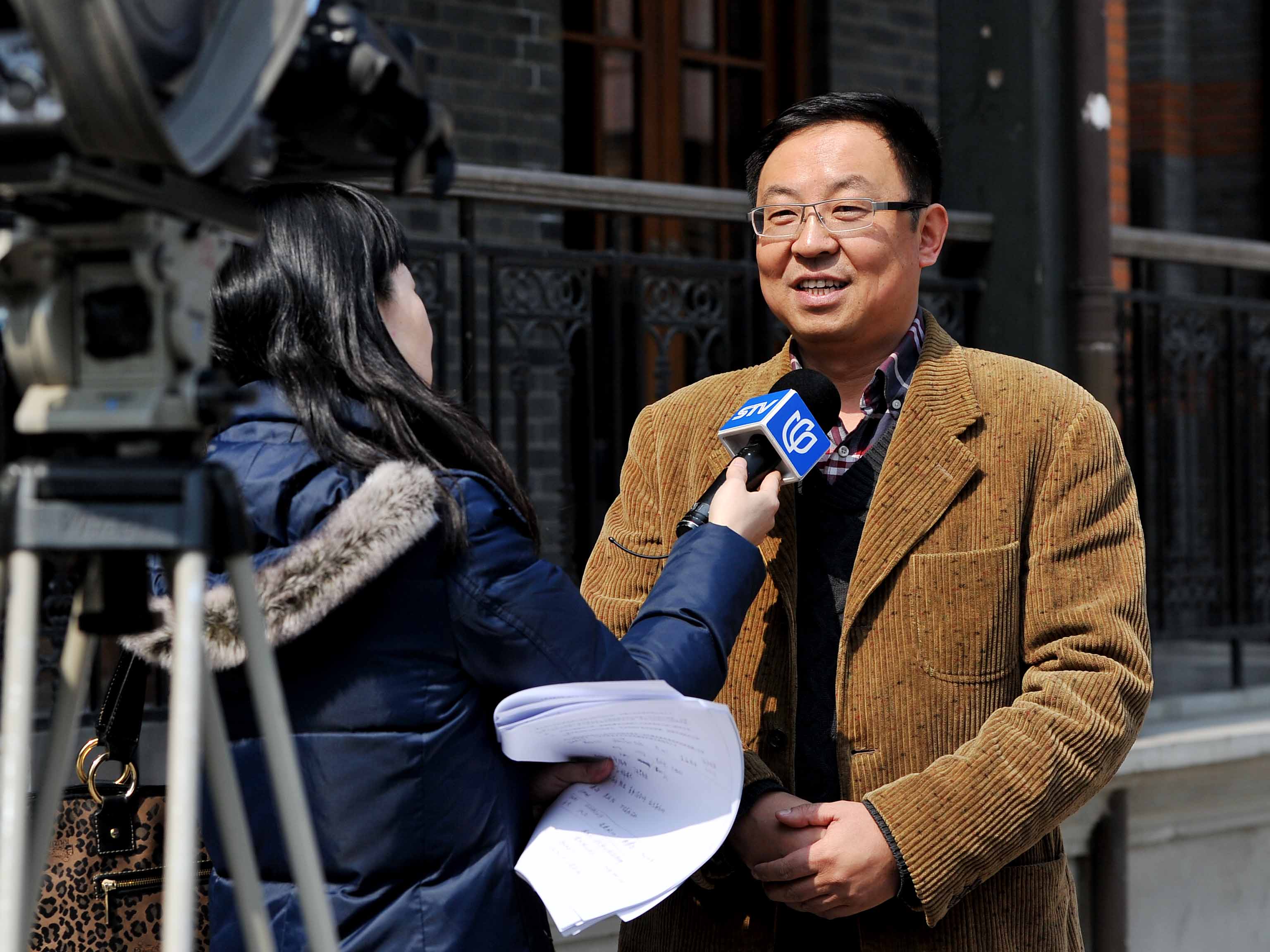 图为党委书记楼巍接受上视新闻频道采访
