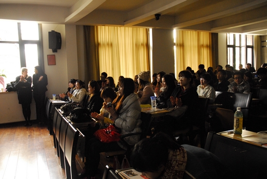 同学们对此交流会表现出极大的兴趣,一个个都热情高涨,不到12点就坐满了整个教室。外籍老师分别介绍了伦敦艺术大学和其六个学院,包括各个学院培养的优秀学生作品和一些名校友。之后又有我校舞美系的两名交换生向大家讲述了她们在伦敦艺术大学的生活体验和学习成果,并且以照片这种更为直观的方式展示了她们在伦敦艺术大学的学习生活状态。