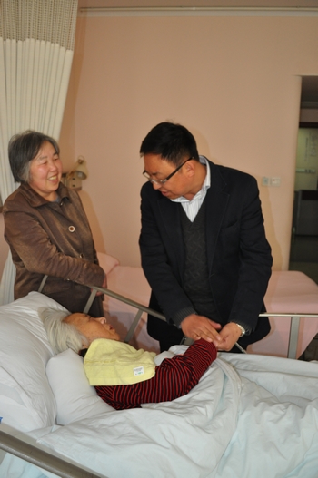 近日,我校党委书记楼巍同志带领老干部处刘海庆处长专程赴瑞金医院看望因病住院的离休干部严金萱同志。