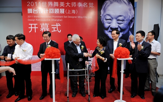 最后,领导和嘉宾们共同为开幕式剪彩——2011世界舞美大师李名觉舞台设计回顾展(上海)正式开展,领导、嘉宾和前来观展的各界观众一同参观了展览。