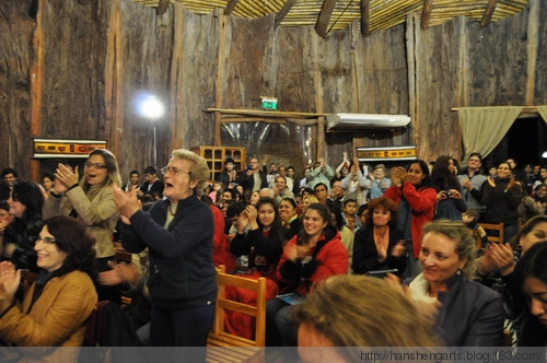 演出结束后,全场发出一片欢呼声。半个多小时,观众依依不舍,围着我校学生签名、合影,对中国乐器表示出了强烈的好奇。阿根廷萨尔塔合唱团的学生们特地留下来,为我们演唱了中国歌曲“歌声与微笑”。这天正好是戏曲学校满亚茹同学的生日,观众一起为他唱起了生日歌,小满同学感动地落泪。中国中央电视台采访了担任中国团音乐总监的戏曲学校的杨健老师和艺术总监田蔓莎等。