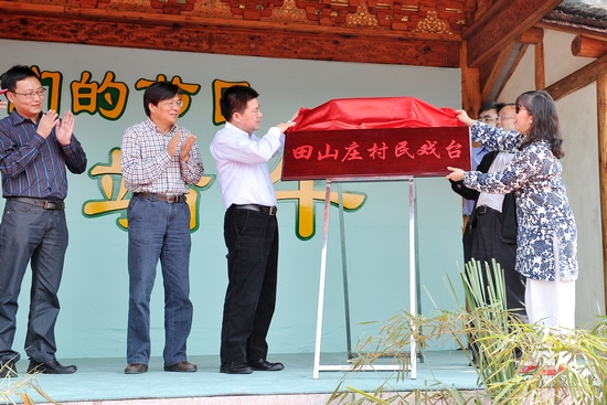 图为黄昌勇副院长为田山庄村民戏台揭幕