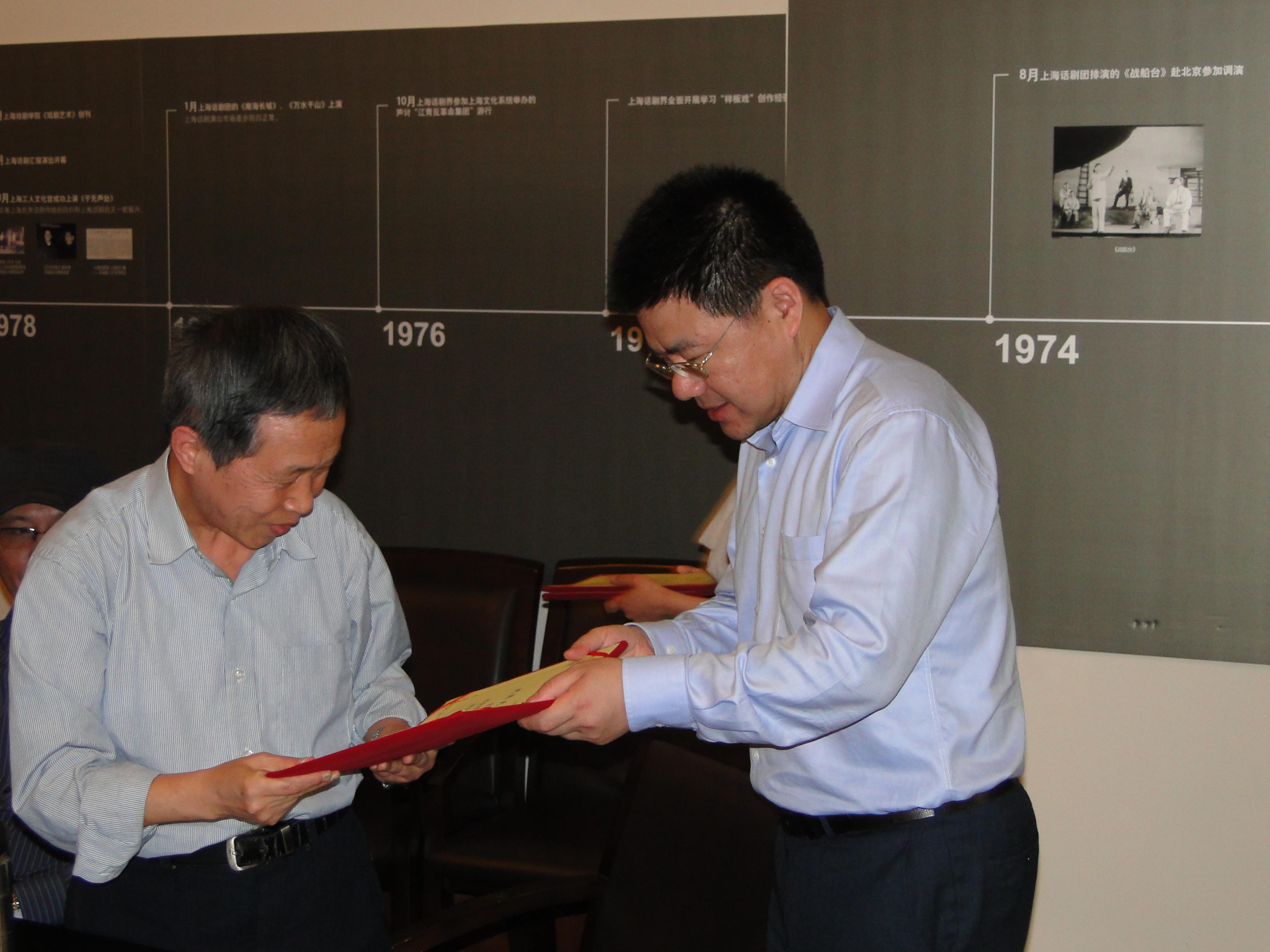 近日,教务处召开上海戏剧学院规划建设教材工作会议暨教材指导小组聘任仪式。会上,副院长黄昌勇为上海戏剧学院教材指导小组专家丁罗男、朱国庆、宋光祖、沈炜元、王邦雄、张仲年颁发聘书。